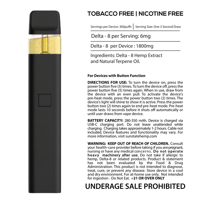Sun State Hemp prioritizes quality, safety, and customer satisfaction. Our Delta 8 disposable vapes are: